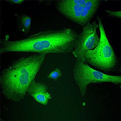 The combination of sulforaphane and Maitake extract supports the movement (or translocation) from the cytoplasm to the nucleus of NRF2 and increases the levels of certain Phase 2 enzymes. Below are images of a technique called immunofluorescence which illustrate how much protein is being produced in the cell and the location of that protein.